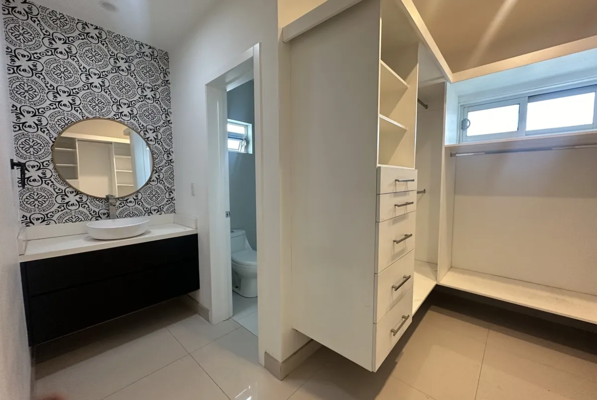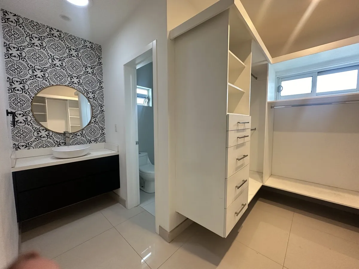 • 3 recámaras, cada una con baño completo y clóset (principal con walk-in closet)